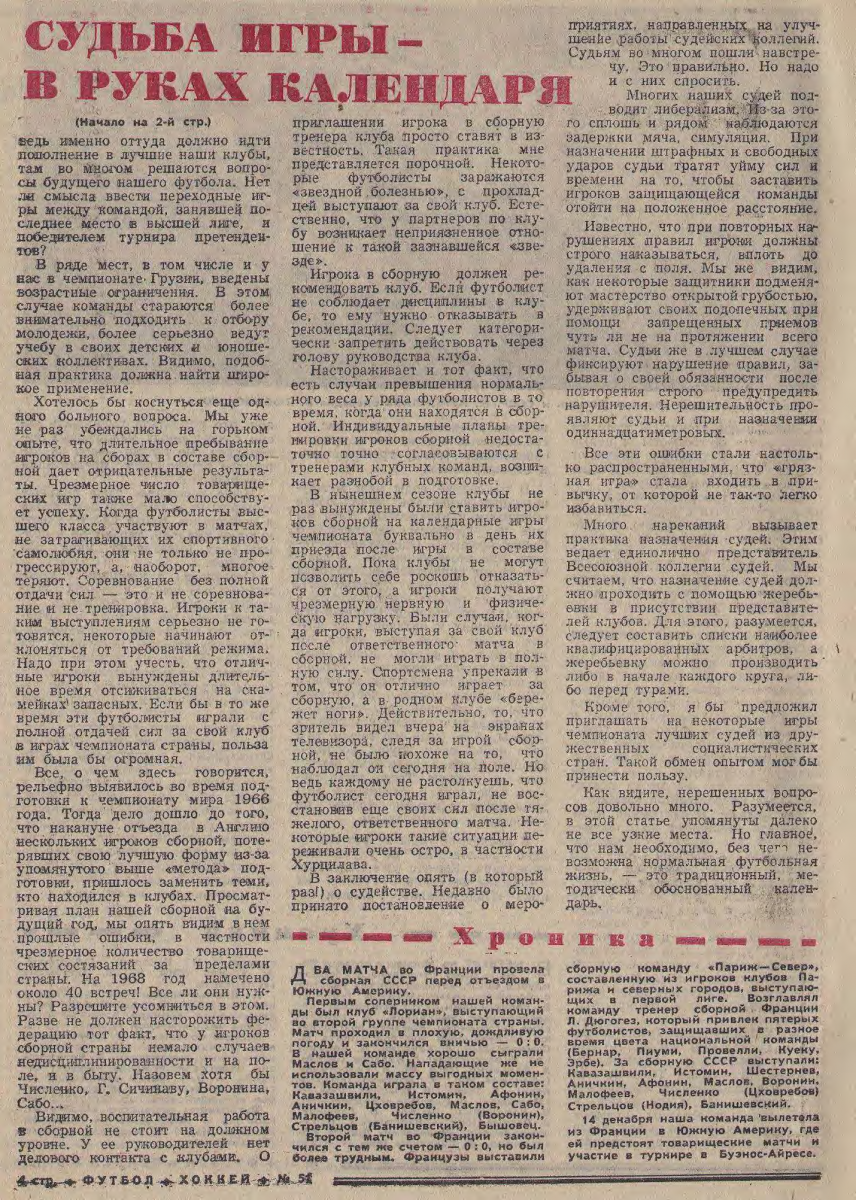 Еженедельник «Футбол-Хоккей» № 49 3.XII. 1967 года