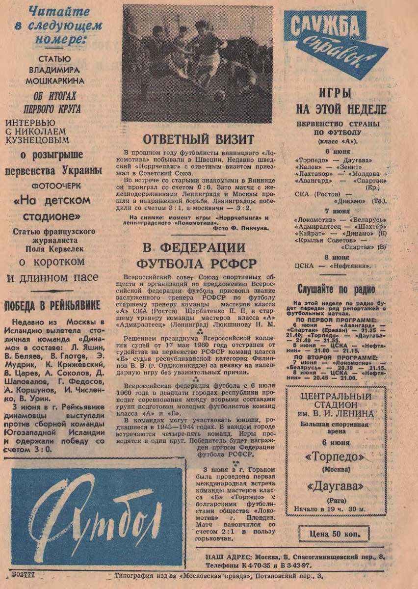 https://live.staticflickr.com/65535/...b63e9ae0_b.jpg Содержание темы-2: 51 страница #501. П. Цива. Новый стадион в Сухуми #502. А. Богданов. 11 лучших арбитров #503. Еженедельник «Футбол». Чего вы ждете в новом сезоне? #504. Борис Привалов. Уголок юмора #505. Г. Лесков. Рекорд "Тотенхэма" #506. В. Владимиров. Лидер под угрозой #507. Александр ФХ Максимов. "Интер", "Рома" или.....? #508. Мервин Гриффитс. Человек в центре #509. Мервин Гриффитс. Человек в центре #510. Еженедельник «Футбол». ЧИТАЙТЕ в следующем номере 52 страница #511. Еженедельник «Футбол». № 3 (34)/15 января 1961 года #512. Андрей Жордания. Интервью для "Футбола" #513. Никита Симонян. Интервью для "Футбола" #514. Герман Зонин. Интервью для "Футбола" #515. Виктор Новиков. #516. А. Морозов. "Ширак" обретает друзей #517. А. Морозов. "Ширак" обретает друзей #518. Гарун Акопов. Первые удары по мячу..... #519. Еженедельник «Футбол». Чемпионат России в предстоящем сезоне #520. Евгений Шатров. Фельетон 53 страница #521. Владимир Кондратенко. После первого круга #522. Владимир Кондратенко. После первого круга #523. Мервин Гриффитс. Человек в центре #524. Мервин Гриффитс. Человек в центре #525. Еженедельник «Футбол». ЧИТАЙТЕ в следующем номере #526. Еженедельник «Футбол». № 4 (35)/22 января 1961 года #527. Вячеслав Соловьев. Пора первых прогнозов #528. Петр Ступаков. Борьба будет острой #529. Георгий Глазков. За прописку в классе "А" #530. Эльмар Саар. В новой форме 54 страница #531. Борис Апухтин. Стратегия, тактика, система и стиль #532. Борис Апухтин. Стратегия, тактика, система и стиль #533. Борис Орешкин. Школа вратарей #534. А. Васин. В четырех зонах #535. Еженедельник «Футбол». #536. Лев Филатов. Паутина Диди #537. Лев Филатов. Паутина Диди #538. Мервин Гриффитс. Человек в центре #539. Мервин Гриффитс. Человек в центре #540. Еженедельник «Футбол». 55 страница #541. Еженедельник «Футбол». № 5 (36)/29 января 1961 года #542. Евгений Елисеев. За гибкую тактику #543. Александр Пономарев. Ждать осталось недолго #544. Василий Соколов. Внимание технике! #545. Еженедельник «Футбол». Первые шесть туров #546. Виктор Полунин. Пока не упущено время #547. Виктор Полунин. Пока не упущено время #548. Еженедельник «Футбол». Раздается звон мячей #549. Геннадий Радчук. Лидер неизменен "Монако" впереди #550. Геннадий Радчук. Лидер неизменен "Монако" впереди 56 страница #551. Еженедельник «Футбол». "Доппинги" Эленио Эрреры #552. Еженедельник «Футбол». Калейдоскоп #553. Мервин Гриффитс. Человек в центре #554. Мервин Гриффитс. Человек в центре #555. Еженедельник «Футбол». ЧИТАЙТЕ в следующем номере #556. Еженедельник «Футбол». № 6 (37)/5 февраля 1961 года #557. Юрий Ваньят. В предверии нового сезона #558. Юрий Ваньят. В предверии нового сезона #559. Константин Бесков. Будем атаковать! #560. Борис Аркадьев. За место в десятке 57 страница #561. Петр Щербатенко. Тактика-наступление! #562. Л. Григорьев. Мяч на снегу #563. Б.Бекназар-Юзбашев. Открытия последних недель #564. В. Сидоров. В стране тюльпанов #565. Геннадий Радов. Превосходство "бледно-голубых" #566. Мартын Мержанов. Футбольная эстетика Пеле #567. Мартын Мержанов. Футбольная эстетика Пеле #568. Пьер Пибаро. Откровенный разговор #569. Пьер Пибаро. Откровенный разговор #570. Еженедельник «Футбол». ЧИТАЙТЕ в следующем номере 58 страница #571. Еженедельник «Футбол». № 7 (38)/12 февраля 1961 года #572. Александр Келлер. Сдвоенным центром #573. Олег Ошенков. Обновленный "Шахтер" #574. Гайк Андриасян. Приметы весны #575. Владимир Андреев. Злополучное "но" #576. Еженедельник «Футбол». Скорость приносит победу #577