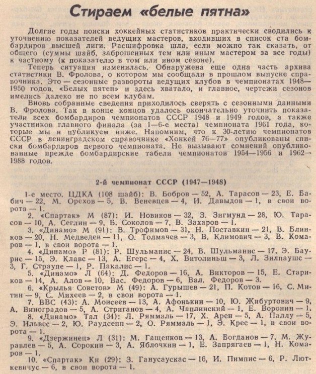 1947-48. Чемпионат СССР. Итог.таблицы, стат.игроков, обзоры