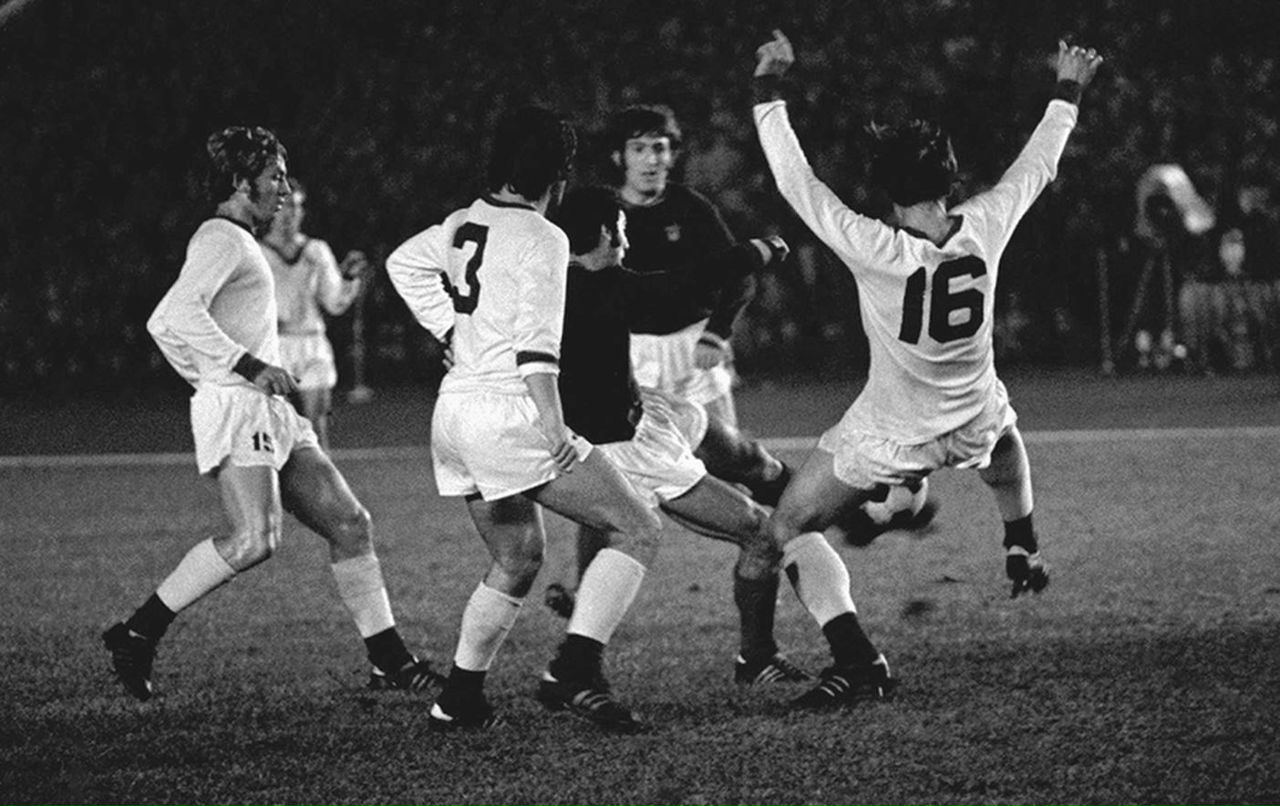 ![]() Блохин и Алеша Абрамян в борьбе за мяч... Иштоян забивает в ворота Самохина... момент у ворот динамовцев ... Колотов, Иштоян, Андриасян и вероятно Зуев - номер 16... "Арарат" (Ереван) - "Динамо" (Киев) 2:1 (0:0) д.в. 1:0 10 октября 1973 года. Финал. Москва. ЦС им. В.И.Ленина. Пасмурно. 10 градусов. 60000 зрителей. Судьи: П.Казаков, И.Лукьянов, А.Табаков (все - Москва). "Арарат": А.Абрамян, Геворкян, Саркисян, Коваленко, Месропян, Андриасян, Бондаренко (Погосов, 73), Иштоян, Маркаров (Казарян, 73), Петросян, Заназанян (к). "Динамо" К: Самохин, Дамин, Матвиенко, Фоменко, Решко, Трошкин, Мунтян, Буряк (Зуев, 87), Колотов, Веремеев, Блохин (Кондратов, 88). Голы: 0:1 Колотов (61, с пенальти), 1:1 Иштоян (89), 2:1 Иштоян (103). Предупреждения: Геворкян (20), Коваленко (75). Последний раз редактировалось Владимир Маслаченко; 03.07.2020 в 17:47. |