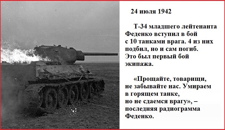 ![]() 23 июля 1942 1-ый таран в Сталинградской битве совершил летчик Попов. Героем стал после войны – Соцтруда, за целину ![]() Записка Болото и его товарищей перед боем: «Туча немецких танков движется на нас.Если умрем, считайте коммунистами» ![]() 23 июля 1942 в ходе Сталинградской битвы Петр Болото из противотанкового ружья подбил 8 танков в одном бою ![]() 23 июля 1942 Гитлер приказал ГА «Б» захватить Сталинград 25 июля Ю.Гальков. Бои на дальних подступах Сталинграда |
