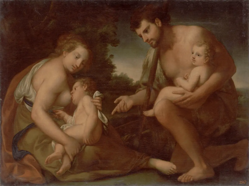 «Сравнительные жизнеописания», Ромул Ну и конечно, все пошло не так, как хотел Амулий. Рея залетела, причем не от кого-то там, а от самого Марса (по некоторым источникам — от Энея). Историк Тит Ливий скептично относя к этому тезису, посчитав, что жрица намерено всех обманула, так как «прегрешенье, виновник которому бог, — меньшее бесчестье». Впрочем, Реи это не помогло — ее казнили (по Плутарху — заключили в темницу), а близнецов было приказано утопить, но произошло что-то непонятное, то ли вода так бушевала, что их просто оставили у берега, а потом Тибр успокоился, то ли рабы были просто тупыми и решили оставить братьев у стоячей реки. Короче, Ромул и Рем выжили. В этом моменте приходит та самая знаменитая волчица, ну или та, кто скрывается под латинским словом «lupa», которое переводится еще и как «проститутка». Рассказывают, что, когда вода схлынула, оставив лоток с детьми на суше, волчица с соседних холмов, бежавшая к водопою, повернула на детский плач. Пригнувшись к младенцам, она дала им свои сосцы и была до того ласкова, что стала облизывать детей языком; так и нашел ее смотритель царских стад, звавшийся, по преданию, Фавстулом. Он принес детей к себе и передал на воспитание своей жене Ларенции. Иные считают, что Ларенция звалась среди пастухов «волчицей», потому что отдавалась любому, — отсюда и рассказ о чудесном спасении. Тит Ливий «История Рима от основания города», Книга I Понятное дело, что волчица вряд ли вскармливала двух мальчиков, поэтому версия Тита Ливия о том, что близнецов подобрала обычная давалка не кажется такой уж и плохой. Пока все вполне логично, не находите? Но давайте и в этот раз поверим легендам и допустим, что волчица и правда заботилась о них. Дальше — больше, пока происходил процесс кормления, пришел пастух, который, мягко говоря, оху... сильно поразился происходящим, поэтому первым же делом позвал всех братков с села, чтобы те тоже заценили данное действо. В общем, все пришли, поглазели, поняли, что волчицу все же лучше отогнать, что и было сделано, после сего братьев приютил тот самый пастух Фаустул. Пастух Фаустул приносит Ромула и Рема своей жене Ларентии. Николя Миньяр. 1654 год. На самом деле, у данного момента достаточно много различных интерпретаций. То, что было в предыдущем абзаце, принадлежит историку Дионисию. Для него кормление было мимолетным процессом, то бишь волчица просто пришла, дала пососать и в этот же день была прогнана пастухами. Вот Плутарх, например, писал, что волчица о них заботилась чуть более продолжительное время, причем не одна, а с дятлом, ибо этот звериный дуэт считается священным для бога Марса. Пастух же, по данной версии, забрал мальчиков тайно, под покровительством Нумитора. Пока пастух подбирал братьев, его жена рожала, но ее ребенок умер сразу же после родов. Однако наш герой не растерялся и подложил вместо одного мертвого младенца двух живых. Ларентия (жена) подвоха не заметила, приняв детей за родных. Позже им дали имена — Ромул и Рем. Оба брата были крепки, умны, а что самое важное — благородны. Цитата: