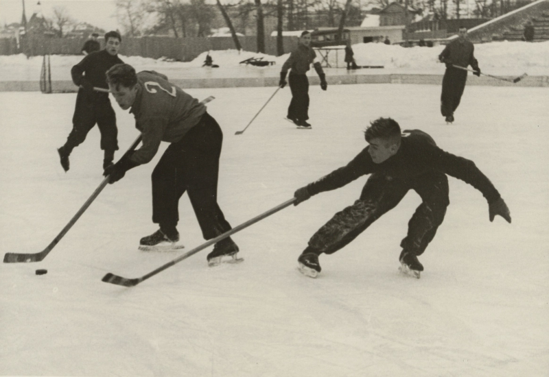 Хоккей с шайбой — одна из самых популярных зимних игр, с особенным размахом пропагандируемая в этом году в СССР. В прошлое воскресенье стартовал первый в СССР всесоюзный чемпионат по хоккею. На предварительном этапе 12 отобранных команд будут соревноваться в трех подгруппах. Сборная Эстонской ССР также включена в их число. В стартовом матче наш представитель в Риге проиграл сборной Латвийской ССР, с крупным счетом 1:5. Основной причиной проигрыша нашей команды стала её неподготовленность, так как из-за мягкой погоды пока не удалось построить ледовую площадку.