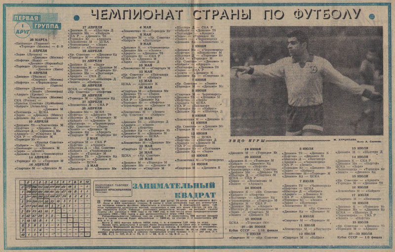 (Адлер). «Зенит» «Арарат» М (Туапсе), «Кубань» «Черноморец» (Краснодар), «Динамо» Мн «Локомотив» (Хоста), «Динамо» к «Торпедо» М (Гагра), «Динамо» Тб «Торпедо» Кт (Леселидзе), «Заря» «Мешахте» (Очамчира), «Динамо» Б «Нефтяник» (Батуми), 2 марта. «Пахтакор» «Кайрат» (Ташкент), «Черноморец» «Зенит» (Адлер), 3. 3. «Шахтер» «Кр. Советов» («Политотдел»), «Динамо» М «Политотдел» (Самарканд), СКА Р«Кубань» (Адлер), «Динамо» К «Локометив» (Гагра), «Торпедо» М «Торпедо» Кт (Хоста), «Динамо» то «Динамо» Ми (Леселидзе), ЦСКА«Мешахте» (Сухуми), «Заря» «Нефтяник» (Баку), «Динамо» Кб «Динамо» Бт (Кировабад). 4. «Арарат» «Спартак» (Адлер), 8. «Динамо» М «Шахтер» (Самарканд), «Кр. Советов» «Пахтакор» (Душанбе), «Кайрат» «Политотдел» (Чимнент), «Спартак» «Черноморец» (Туапсе), СКА Р «Арарат» (Адлер), « «Кубань» «Зенит» (Краснодар), «Динамо» Тб «Торпедо» М (Леселидзе), «Динамо» Мн «Динамо» K (Гагра), «Нефтяник» «Динамо» Кб (Кировабад), ЦСКА «Заря» (Сухуми), «Мешахте» «Динамо» Бт (Очамчира), 9. «Локомотив» М «Торпедо» Кт (Очамчира). 14. «Шахтер» «Политотдел» («Политотдел»), «Зенит» «Спартак» (Адлер). 15. «Пахтакор» «Динамо» М (Ташкент), «Кр. Советов» — «Кайрат» (Душанбе), «Арарат» «Кубань» (Адлер), «Черноморец» СКА (Туапсе), «Торпедо» М «Локомотив» (Хоста), «Торпедо» Кт «Динамо» Мн (Кутаиси), «Динамо» К ««Динамо» Тб (Сочи), «Нефтяник» ЦСКА (Баку), «Динамо» Бт -«Заря» (Батуми), «Мешахте» «Динамо» Кб (Кировабад). Полуфиналы. 19 марта. Победители I подгруппы III подгруппы (Ташкент). 20. Победители подгруппы IV подгруппы (База ку). Финалы. 26. Матч з 3 места (Сочи). 27. Матч за 1- 2-е места (Тбилиси). Примечание: в скобках указано место встреч. |