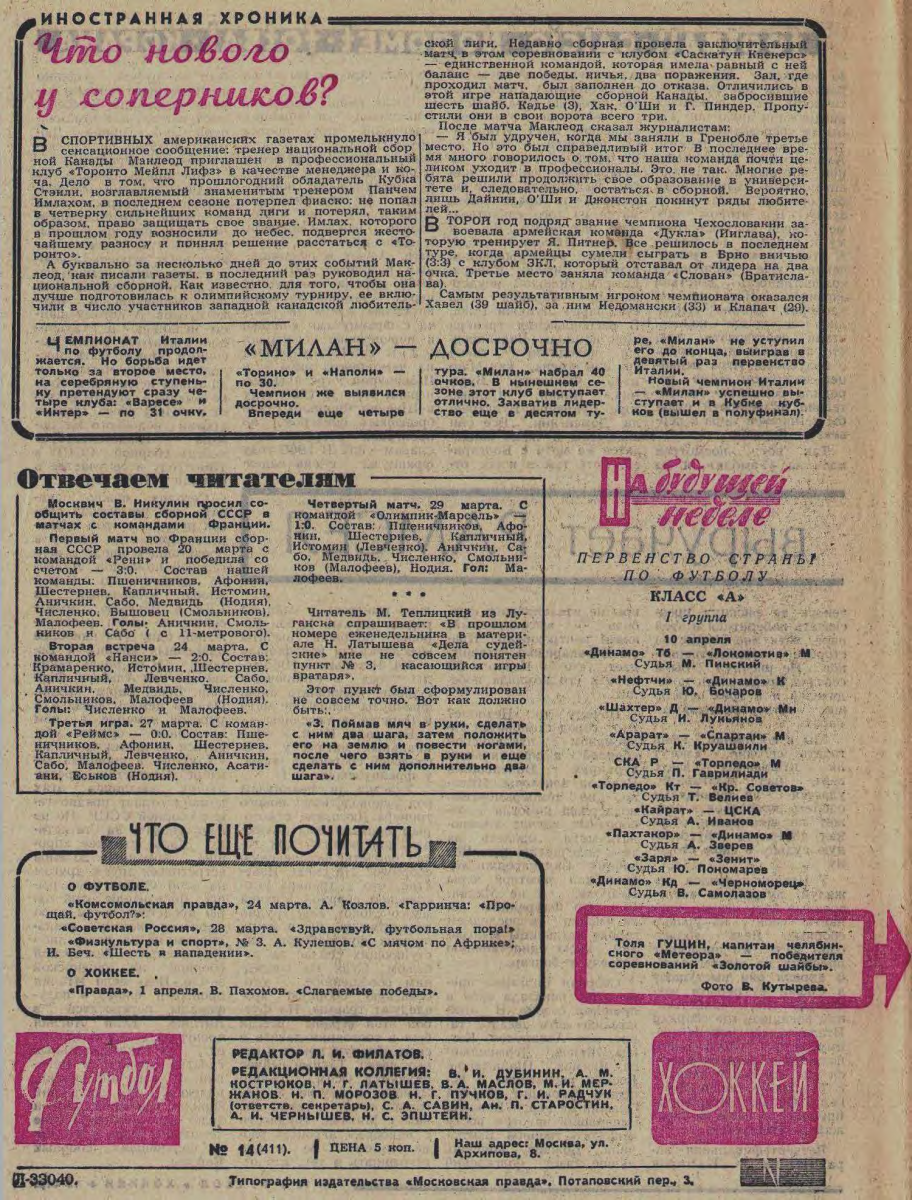Найти все сообщения от Еженедельник «Футбол-Хоккей»