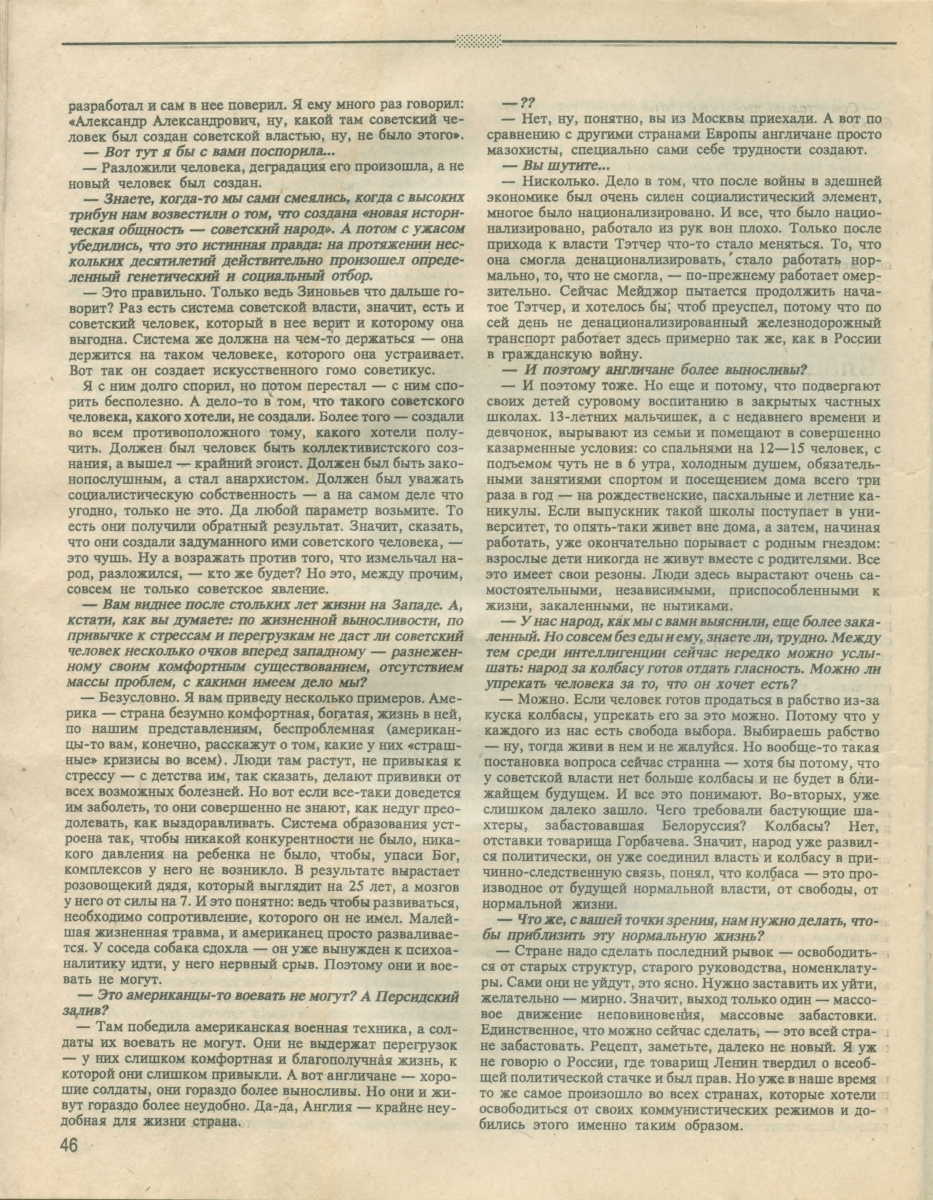 Если мы пофантазируем, что могло бы быть, мне более интересен вопрос, например, мог ли Андрей Дмитриевич Сахаров, чей авторитет шел очень глубоко и далеко, он мог быть новым Гавелом. Я думаю, к тому моменту, когда это обсуждалось, он не мог быть этим упущенным шансом, он был шансом, как все диссидентское движение, он был один из выдающихся лидеров отношения морального и в смысле прав человека, формулировки самых главных принципов.