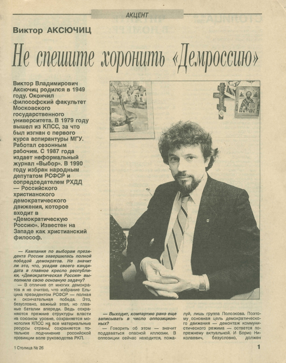 Виктор Аксючиц: Не спешите хоронить «Демроссию»