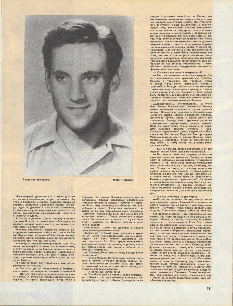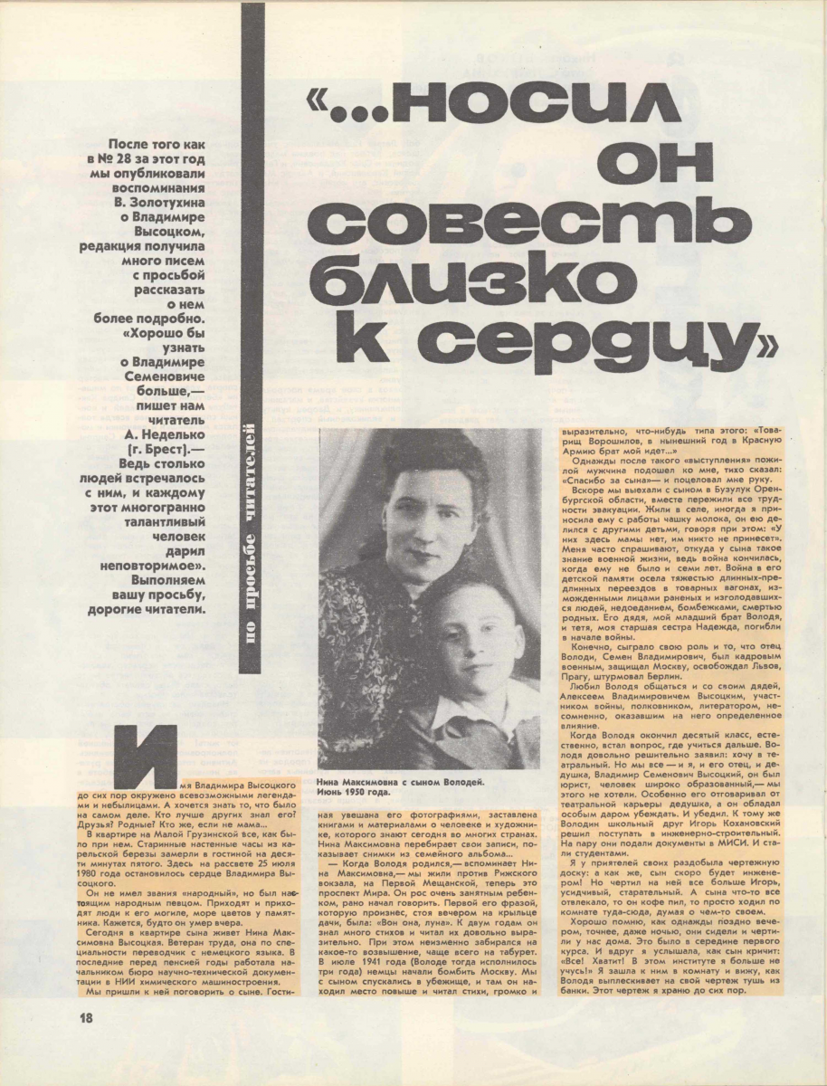 25.07.2025 00:01 Еженедельник «Аргументы и Факты» № 30. Звезда лейтенанта Береста 23/07/2025 Сюжет Легендарные актеры и режиссеры кино Владимир Высоцкий в спектакле по одноименной трагедии Уильяма Шекспира «Гамлет». 1971 г. Владимир Высоцкий в спектакле по одноименной трагедии Уильяма Шекспира «Гамлет». 1971 г. / Анатолий Гаранин / РИА Новости 25 июля 1980 года не стало Владимира Высоцкого. К Театру на Таганке, где служил актёр, 3 дня люди круглосуточно несли цветы, зажигали поминальные свечи. Когда гроб с телом барда установили в театре, очередь растянулась на 9 километров. «Великий доставала» Ольга Шаблинская, aif.ru: Никита, о Высоцком оставили воспоминания многие знаменитости. Но только вы можете рассказать о Владимире Семёновиче. Каким он был папой? Никита Высоцкий: Думаю, и я, и мой брат Аркадий были частью его жизни, но очень небольшой. Когда об отце вспоминают Марина Влади, Любимов или Шемякин, это очень важно. А у меня остались только детские воспоминания. Помню, я болел фолликулярными ангинами несколько раз подряд. В эти дни мама читала мне, причём очень хорошо, она же актриса, ВГИК окончила (Людмила Абрамова – вторая жена Высоцкого, мать двоих сыновей. – Ред.). И тут отец пришёл, лекарства привёз. «Что читаете?» – «12 месяцев». Там девочка хорошая пошла в лес, её встретили 12 месяцев, помогли найти подснежники, за которыми её мачеха злая послала». – «Так, давай мне». И начал читать. У него получилось всё наоборот: девочка какая-то лохушка, а месяцы злые, они с ней разговаривали, как будто с больной: зачем сюда пришла, ты маленькая, иди отсюда. В общем, отец саму ситуацию драматическую изменял. И так разбушевался! Мама смеялась. А я чуть не заплакал. Мне было обидно за девочку, я же привык к интерпретации матери. Владимир Высоцкий: 10 редких фотографий © www.globallookpress.com Владимир Высоцкий: 10 редких фотографий Высоцкий был не просто одарён как поэт и исполнитель. Он был суперстар. Один собирал стадионы. Боярский тоже стадионы собирал. Но у него были поддержка телевидения, газеты, радио, выходили пластинки, его приглашали во все «Голубые огоньки». У отца ничего этого не было. Только магнитофонные записи. Его обожал весь Союз. Он без денег, будучи ещё молодым, договаривался, садился в самолёт и летел в Магадан. На гастролях они с актёрами Таганки сели в пазик, и тот застрял. Люди подбежали, подняли его и перенесли на сухое место. – В Музее Высоцкого очень красивый диван. По тем временам трудно было такую мебель достать… – Отец был великий доставала. Я ходил с ним несколько раз в магазин «Мясо». Он всегда выходил с дефицитом. Умел достать лекарства, об этом и Любимов вспоминает. Помогал людям ставить телефоны, заходил в нужные кабинеты. По*вторяю: он был настоящий, не оторванный от жизни человек. Умел хитрить, умел готовить. Мог пожарить, сварить, затушить. А как отец чай заваривал! Колдовал: «Не смотрите, это тайна». У него были китайские чаи, европейские в железных баночках. Эти банки он не выбрасывал. Они стоят в музее на кухне наверху, как при его жизни. Инсталляция квартиры Владимира Семеновича в новой экспозиции Государственного музея Владимира Высоцкого, открытого после реконструкции. Инсталляция квартиры Владимира Семеновича в новой экспозиции Государственного музея Владимира Высоцкого, открытого после реконструкции. Фото: РИА Новости К слову, у отца не было дома до