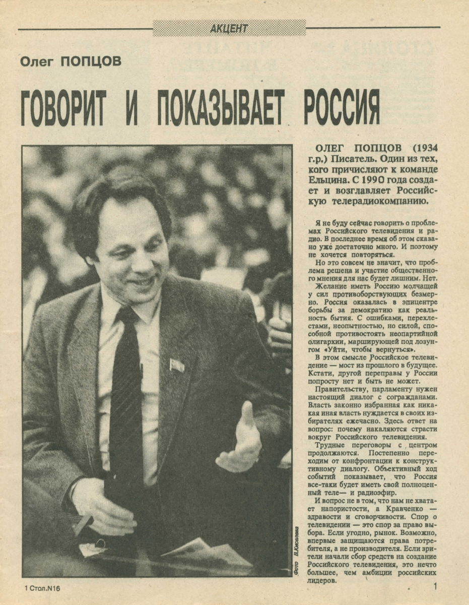 Интервью с Олегом Попцовым в «Московском комсомольце»