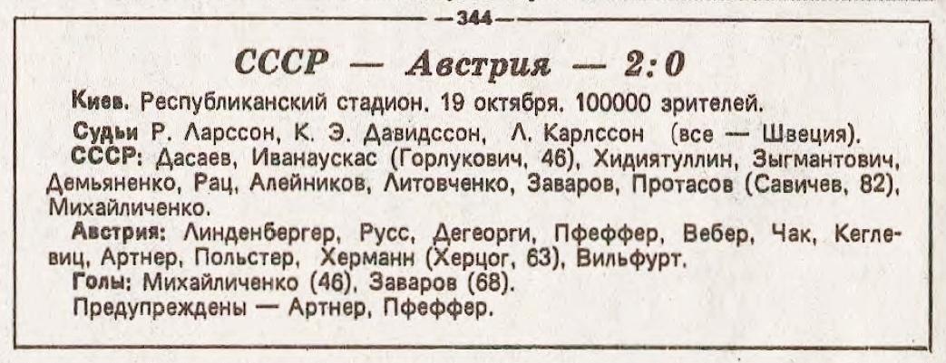Летом о хоккее. Анатолий Тарасов (1968) Встреча с хоккеистами в ЦК ВЛКСМ. Время. Эфир 08.05.1979 16 июня родился Заслуженный мастер спорта СССР, Заслуженный тренер СССР Константин Борисович Локтев (1933-1996). Карьера : 1952—1953 — Спартак (Москва) 1953—1954 — ОДО (Л) 1954—1966 — ЦСКА (ЦСК МО) Достижения : Чемпион ЗОИ 1964. Третий призёр ЗОИ 1960. На ЗОИ — 14 матчей, 12 шайб. Чемпион мира 1964—1966. Второй призёр ЧМ 1957—1959. Третий призёр ЧМ 1960 и 1961. На ЧМ — 43 матча, 38 шайб. Лучший нападающий ЧМ 1966. Чемпион СССР 1955, 1956, 1958—1961, 1963—1966. Второй призёр чемпионата СССР 1957. Третий призёр чемпионата СССР 1962. В чемпионатах СССР — около 340 матчей, забросил 213 голов. Обладатель Кубка СССР 1955, 1956, 1961 и 1966. Под руководством Локтева ЦСКА (Москва) — чемпион СССР 1975, 1977. Награждён орденом «Знак Почёта» (1965), медалью «За трудовую доблесть» (1975). В 2007 году введен в Зал славы ИИХФ. Входил в список 34 лучших хоккеистов СССР в 1964 году. Тренер ХК ЦСКА (Москва) — 1967-69. Главный тренер по хоккею отдела спортивных игр Министерства обороны СССР — 1969-70. Тренер ХК ЦСКА (Москва) — 1970-74. Старший тренер ХК ЦСКА (Москва) — 1974-77. Тренер-консультант ХК «Партизан» (Белград, Югославия) — 1977-78. Старший тренер ХК «Легия» (Варшава, Польша) — 1978-80. Старший тренер ХК ЦСКА (Болгария) — 1981-82. Старший тренер СКА (Новосибирск) — 1983-84. В 1976-77 — тренер первой сборной команды СССР. После третьего места на чемпионате мира в 1977 году Локтева отправили в отставку. https://sun1-15.userapi.com/c849332/...X6LWPKk20s.jpg Валерий Маслов. 1958 г. - "Труд" (Нальчик), 1958 г. - Калининград, 1959-61 гг. - "Труд" (Калининград), 1961-71 гг. - "Динамо" (Москва), 1971-72 гг. - "Динамо" (Махачкала), 1973-75 гг. - "Динамо" (Вологда). Дружеский шарж И.Соколова. https://pp.userapi.com/c854520/v8545...84Y1TRyMSo.jpg Владимир Кесарев. 1947 г. - "Борец" (Москва), 1948-49 гг. - "Машиностроитель" (Москва), 1950-53 гг. - "Динамо-клубная" (Москва), 1954-65 гг. - "Динамо" (Москва). https://pp.userapi.com/c854520/v8545...R3Smtjimw0.jpg Дружеский шарж И.Соколова. https://foto-history.livejournal.com/12639048.html Московское "Динамо" в середине 50- х встречалось с зарубежными клубами и что интересно в 1955 дома, на "Динамо", при 60 000 зрителей проиграли "Милану" 2:4... в ответном же матче на "Сан-Сиро" при 100 000 тиффози вынесли их на щите 4:1... изображения к сожалению не нашлись... был повержен Лондонский "Арсенал" в 1954 - 5:0.... на этом изображении "Динамо играет в Бордо.... Крижановский, Яшин, Сальников... "Жиронда" (Бордо, Франция) - "Динамо" (Москва, СССР) - 0:3 (0:1) 21 октября 1954 года. Товарищеский матч. Бордо. Муниципальный стадион. Ясно. 26 градусов. 20000 зрителей. "Динамо" (Москва, СССР): Яшин, Родионов, Крыжевский (к) (Царев, 80), Б.Кузнецов, Байков, Савдунин, Шабров, Ильин, Мамедов (Гогоберидзе "Динамо" Тбилиси, 65), Сальников, Рыжкин. "Жиронда" (Бордо, Франция): Бернар, Жанжевски, Гримонпон (к), Окур, Гарига, Бермис, Абдесслем, Дрисс, Каргю, Вознеско, Скандер. https://pp.userapi.com/c848632/v8486...sytNN6aXpg.jpg Голы: 0:1 Ильин (9), 0:2 Рыжкин (70), 0:3 Гогоберидзе (74). https://vk.com/sovfootball?z=album-2666393_31915634 https://vk.com/sovfootball?z=album-2666393_92541410 https://pp.userapi.com/c855420/v8554...QBmOj9mk6I.jpg Игорь Численко. 1956 г. - ФШМ (Москва), 1957-58,59-70 гг. - "Динамо" (Москва), 1959 г. - "Спартак" (Москва), 1971 г. - "Динамо" (Целиноград). Дружеский шарж И.Соколова. Невозможный Бесков. О легендарном футболисте, тренере московского "Спартака" (1988) https://pp.userapi.com/c855420/v8554...B8FE8kRvKQ.jpg Владимир Пильгуй. 1965-69 гг. - "Днепр" (Днепропетровск), 1970-81 гг. - "Динамо" (Москва), 1982-84 гг. - "Кубань" (Краснодар). https://pp.userapi.com/c850228/v8502...jxS1GJ_Eyw.jpg Лев Яшин |