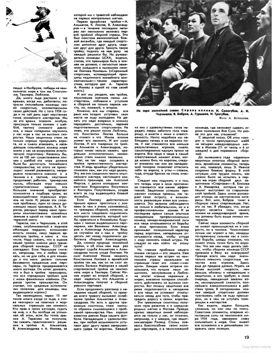 Первый из запланированных перед чемпионатом мира матчей сборная СССР провела в Хельсинки. Эту встречу наши хоккеисты выиграли у сборной Суоми со счетом 7:1 (3:0, 2:1, 2:0).