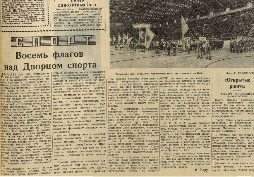 XXIII ЧЕМПИОНАТ МИРА Анкета "Советского спорта" ОТВЕЧАЮТ КАПИТАНЫ КОМАНД 1. Расскажите о подготовке вашей команды к первенству и о ваших планах. 2. Вспомните самое памятное событие в жизни вашей команды. 3. Что вы думаете о будущем хоккея? |