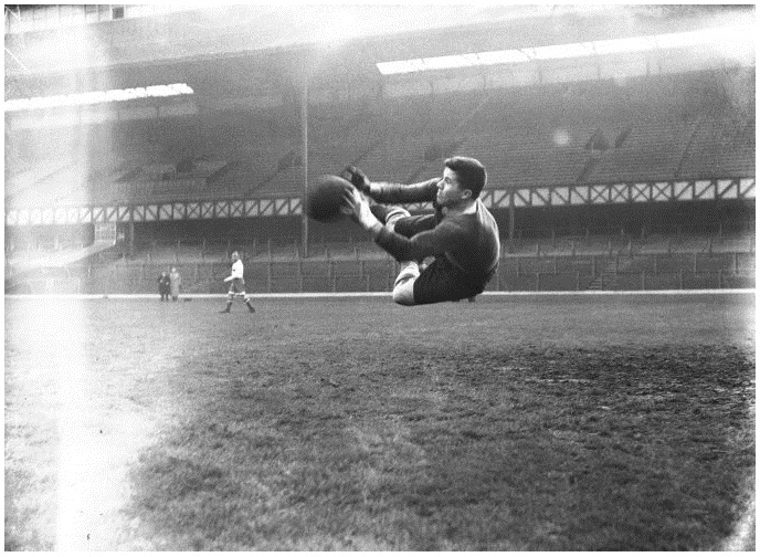 Алексей Хомич на тренировке московского "Динамо". 27 ноября 1945. Глазго, стадион "Айброкс". Заключительный матч британского турне против "Рейнджерс", состоявшийся на следующий день, завершится вничью 2:2 |
